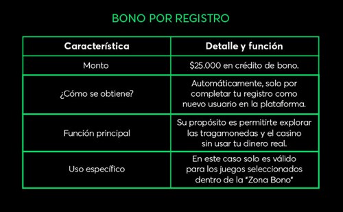 En términos sencillos, el bono de bienvenida es un regalo directo que te brindamos para que disfrutes de los juegos y pruebes la experiencia dentro de nuestra plataforma, sin hacer depósito, con solo registrarte ya lo obtendrás automáticamente.
