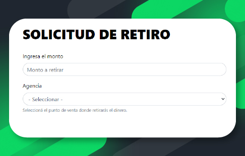 Ingresá el monto que deseás retirar e indicá la cuenta bancaria donde deseás recibir el retiro por transferencia bancaria.