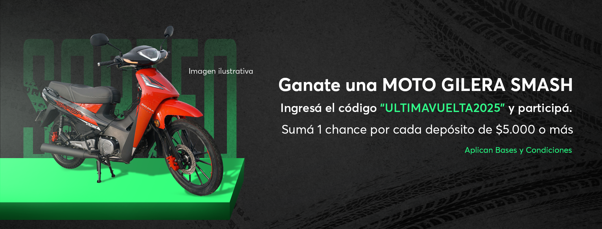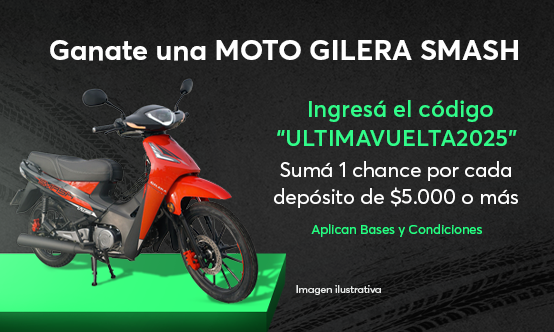 - El premio consiste en una (1) motocicleta marca Gilera, modelo Smash 110 Base, tipo motocicleta, 0 km (kilómetro cero), color sujeto a disponibilidad al momento de la entrega, con motor de 110cc, arranque eléctrico y a patada, transmisión semi automática, apta para uso urbano.El premio no incluye gastos de patentamiento, flete, seguro ni cualquier otro gasto asociado a la transferencia, inscripción o uso del vehículo, los cuales serán exclusivamente a cargo del ganador. No incluye casco, seguro, ni ningún otro accesorio o gasto no especificado expresamente en la presente cláusula. La factura correspondiente al premio será cedida al ganador/a.